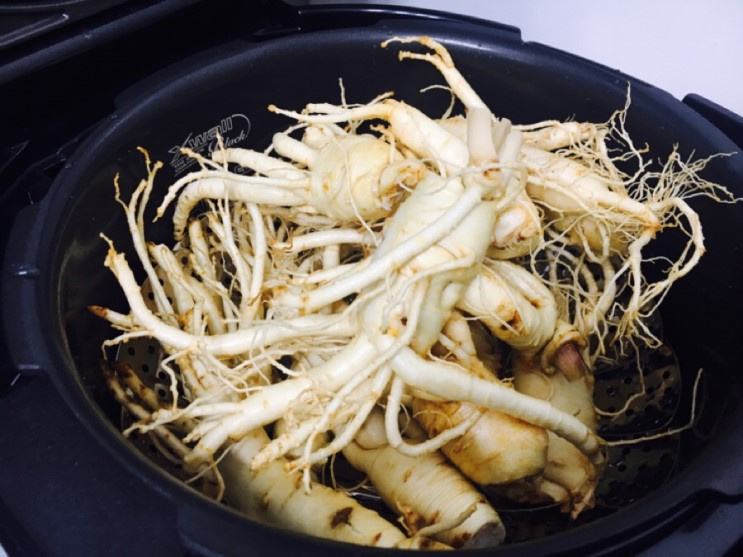 먼저 인삼을 깨끗하게 손질해야 해요. 흙이 깊숙이 박혀 있는 경우가 많기 때문에 부드러운 솔로 흐르는 물에서 천천히 문질러 제거하면 됩니다. 여기서 강한 솔을 쓰면 인삼 껍질이 손상돼 향과 영양이 빠져나갈 수 있으니 꼭 부드러운 솔을 선택하세요. 잔뿌리는 취향에 따라 제거해도 되고 그대로 두어도 됩니다. 잔뿌리까지 포함하면 홍삼 이후의 활용도가 더 높거든요.